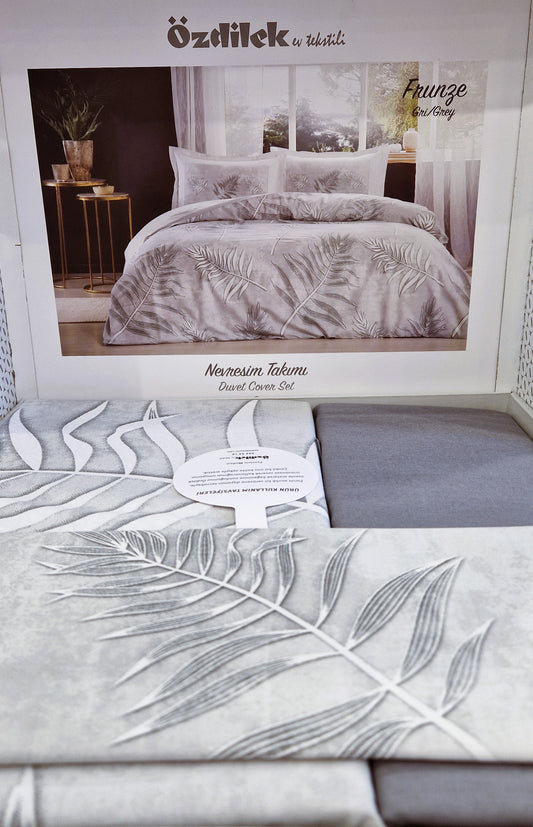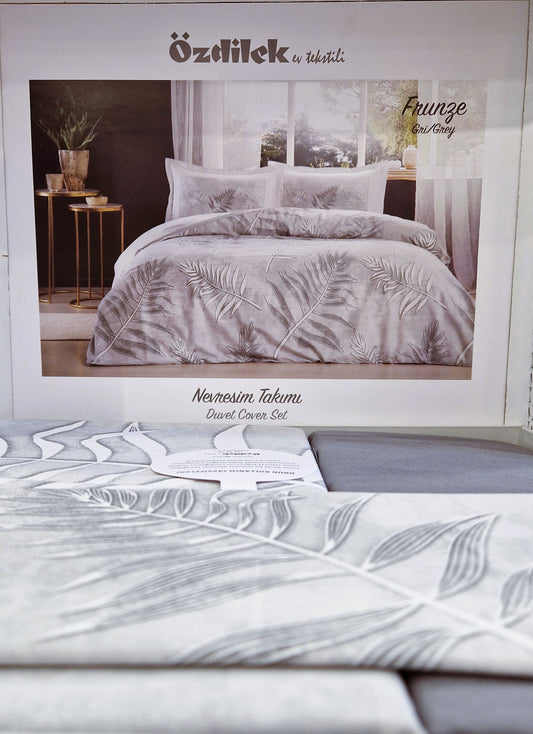 Set Lenjerie de pat Ozdilek – FRUNZE - Gri - 2 Persoane