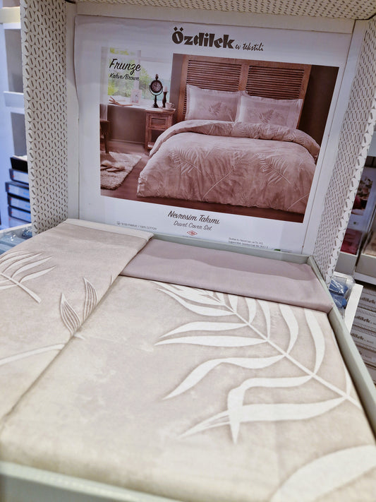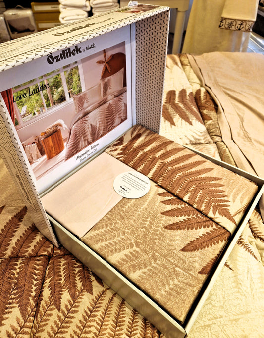 Set Lenjerie de pat Ozdilek – FRUNZE - Bej/Cafe - 2 Persoane