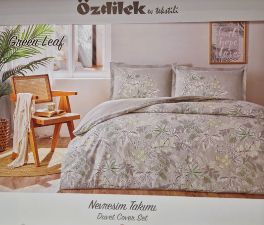 Set Lenjerie de pat Ozdilek – GREEN LEAF - Gri/Verde - 1 Persoana