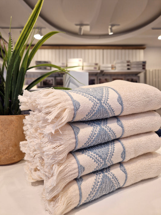 Prosop OZDILEK - ENCRE - Crem/Albastru - 50 cm x 90 cm