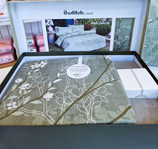 Set Lenjerie de pat Ozdilek – White Sakura - Kaki - 2 Persoane