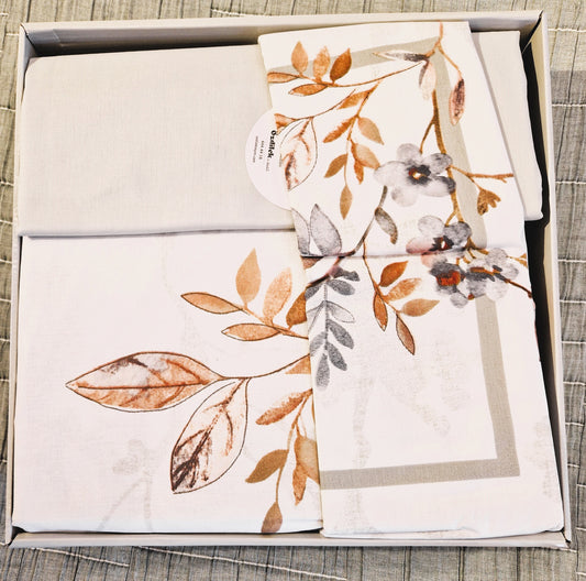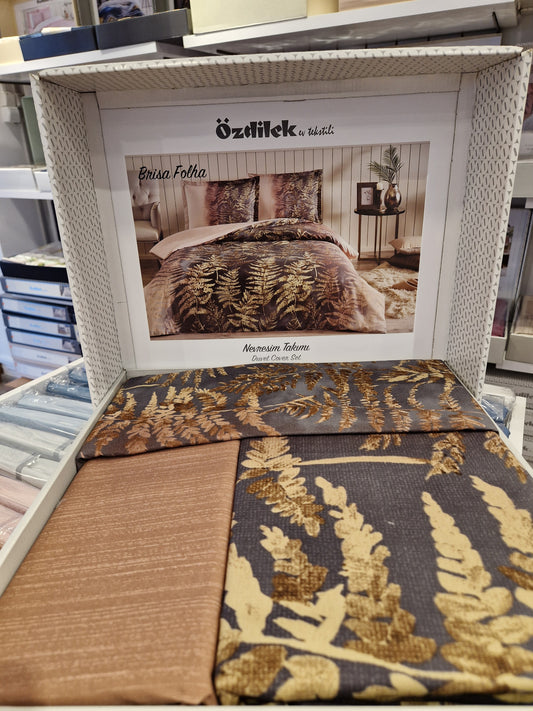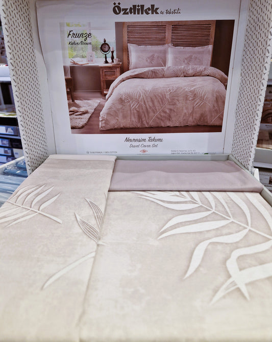 Set Lenjerie de pat Ozdilek – FRUNZE - Bej/Cafe - 2 Persoane