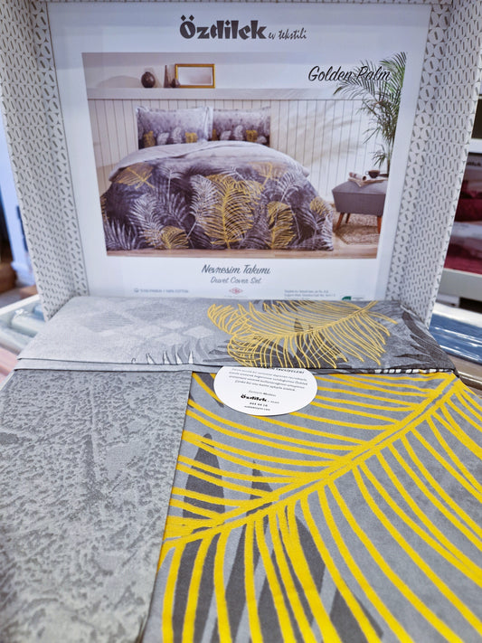 Set Lenjerie de pat Ozdilek – GOLDEN PALM - Gri - 2 Persoane