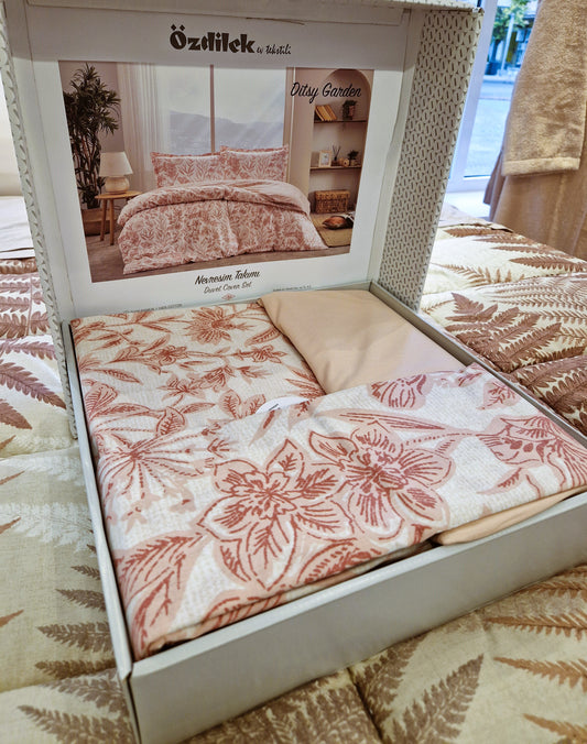 Set Lenjerie de pat Ozdilek – DITSY GARDEN - Pudra - 2 Persoane
