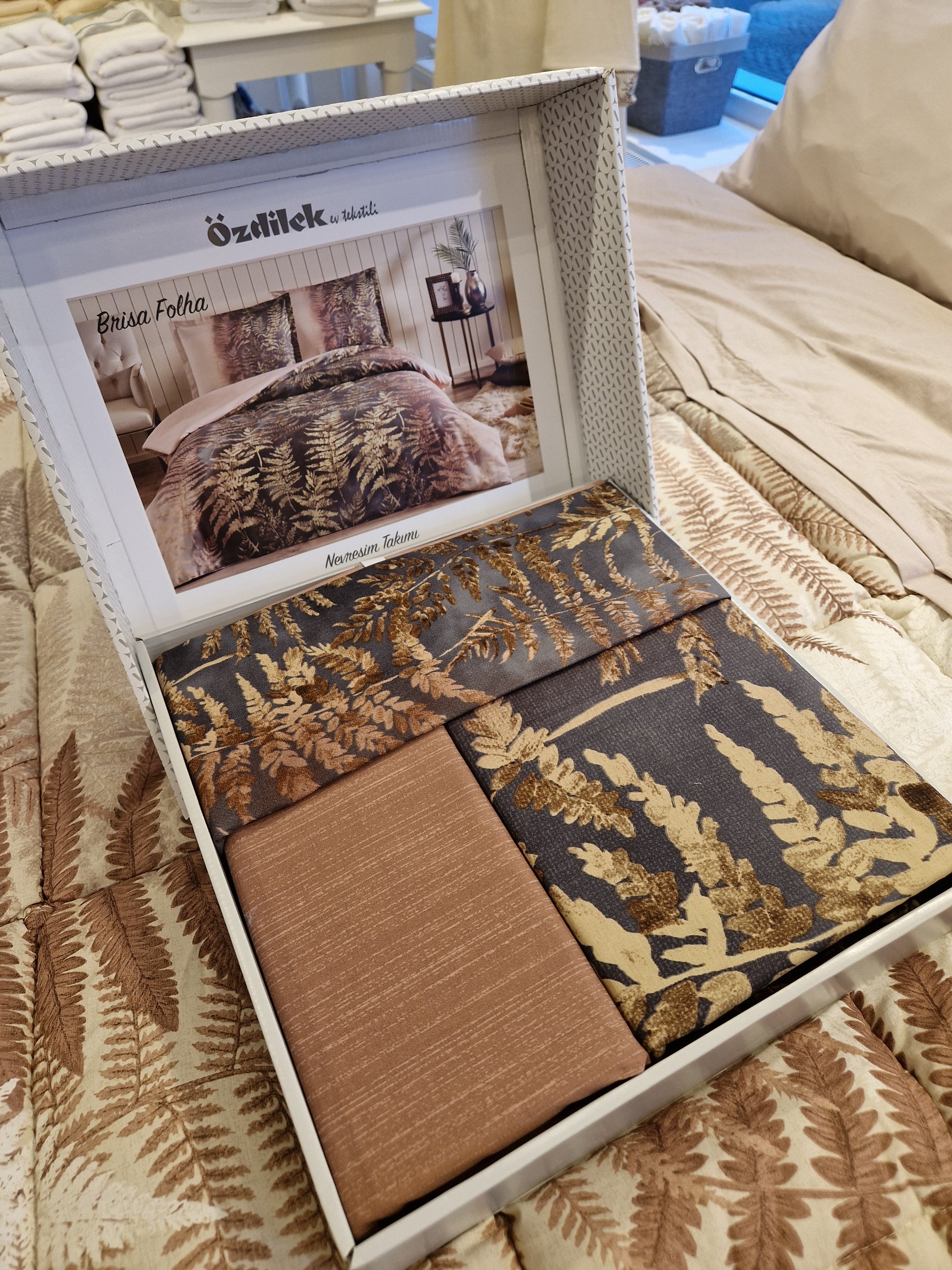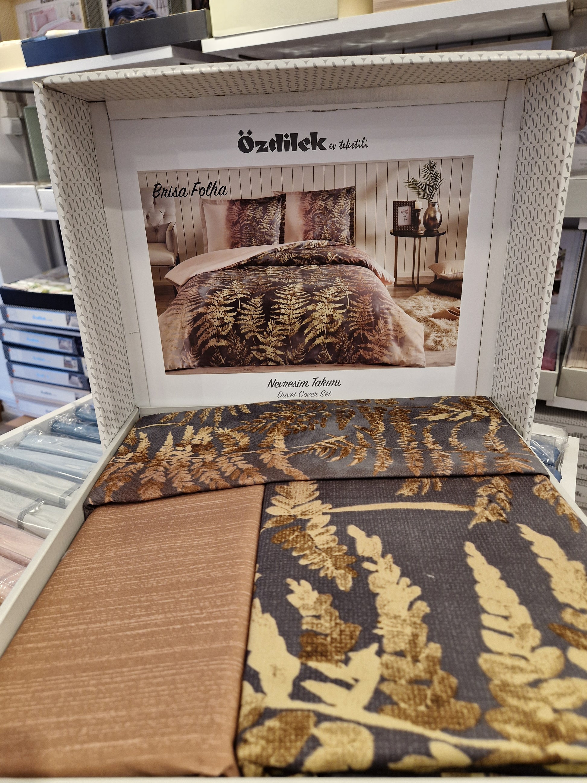Set Lenjerie de pat Ozdilek – BRISA FOLHA - Bej - 2 Persoane