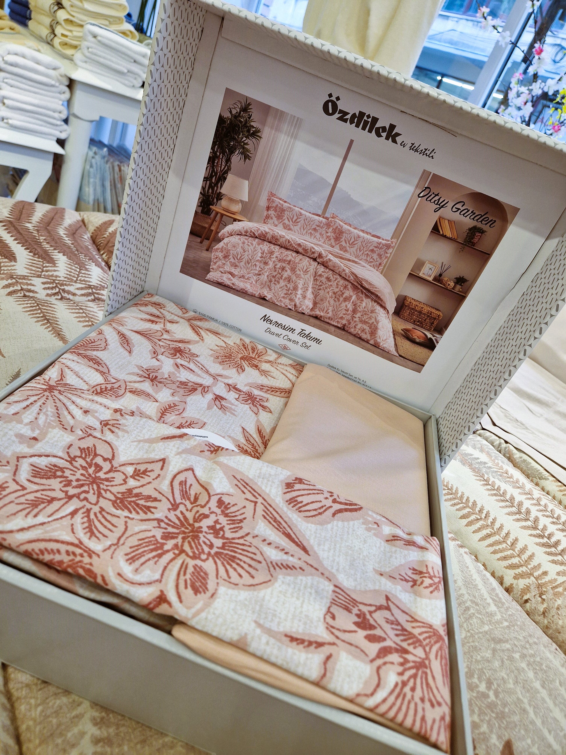 Set Lenjerie de pat Ozdilek – DITSY GARDEN - Pudra - 2 Persoane