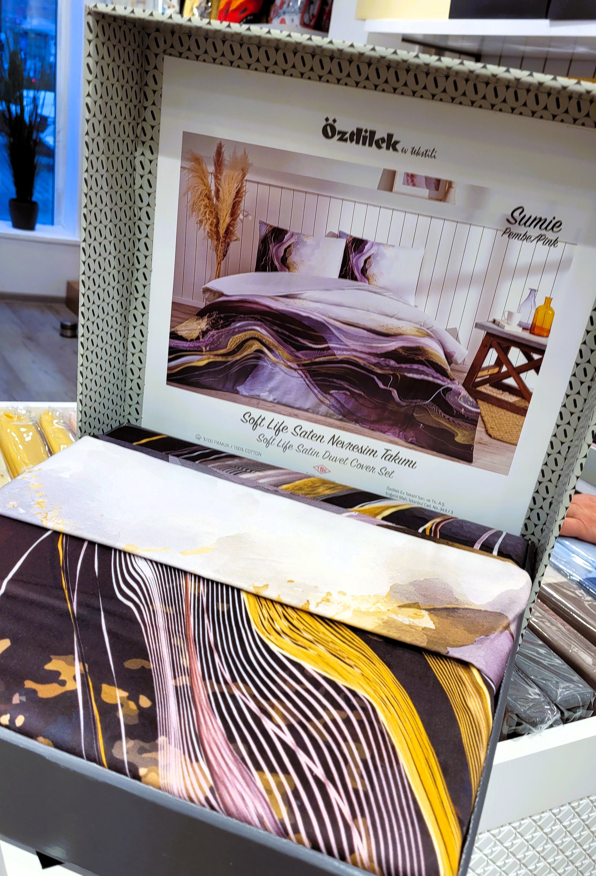 - Lenjeriile Ozdilek din satin sunt caracterizate printr-o textură fină și lucioasă, oferind un aspect elegant și rafinat. Fabricate din materiale de înaltă calitate, aceste lenjerii sunt moi la atingere și au un aspect strălucitor, aducând un plus de confort și lux dormitorului. Sunt disponibile într-o gamă variată de culori și modele, potrivindu-se cu diverse preferințe estetice. Satinul conferă o senzație de răcoare vara și de căldură plăcută iarna, fiind ideal pentru un somn odihnitor.